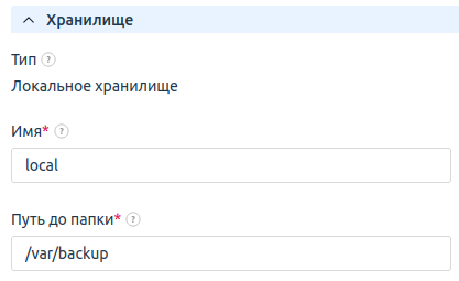 Форма настройки хранилища отличается в зависимости от выбранного типа хранилища. Настройка локального хранилища: