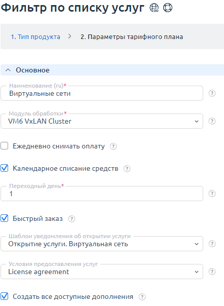 Перейдите Продукты → Тарифные планы → Создать → Виртуальная сеть.