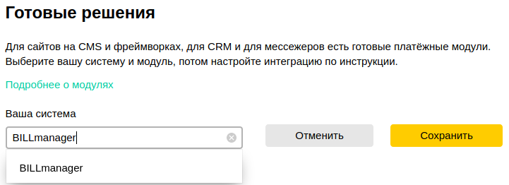 Выберите из списка "Ваша система" — BILLmanager и нажмите Сохранить.