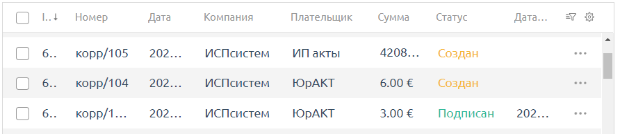 Акты корректировки будут добавлены в таблицу актов выполненных работ. Акты корректировки нумеруются отдельно от актов выполненных работ и имеют приставку "корр".
