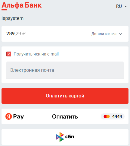 1. Выбор модуля оплаты: "Альфа-Банк".