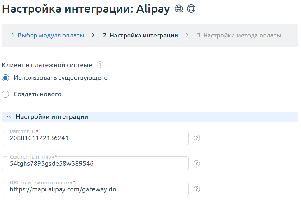 2. Секретный ключ — секретный ключ, указанный в системе Alipay.