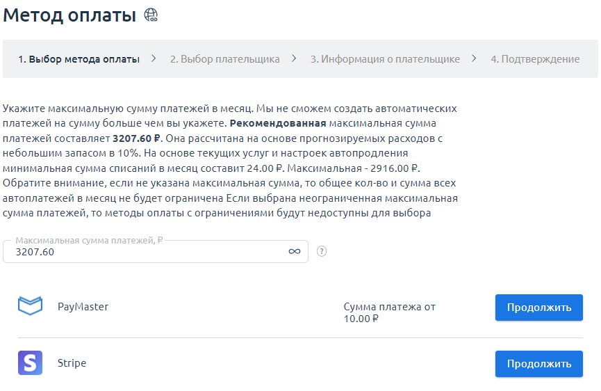 При создании автоплатежа система не позволит клиенту оставить пустым поле Максимальная сумма платежей, если в настройках метода оплаты вы указали ограничения минимальной или максимальной суммы платежа.