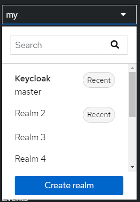 Чтобы создать новое, нажмите Create realm.