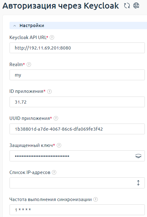 - Keycloak API URL — укажите адрес REST API системы Keycloak.
