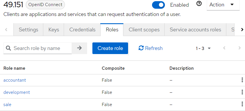 - Client Role — выберите роль в Keycloak.