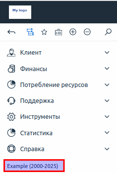 https://example.com, а неhttps://billmanager.example.com. - Копирайт — текст копирайта. Обозначает физическое или юридическое лицо, которому принадлежат авторские права на ресурс. Является ссылкой на домашнюю страницу. Отображается: