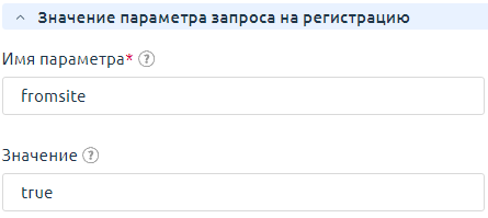 Значение параметра запроса на регистрацию — укажите Имя параметра и Значение, которые передаются в API-запросе на регистрацию клиента в Clouden;
