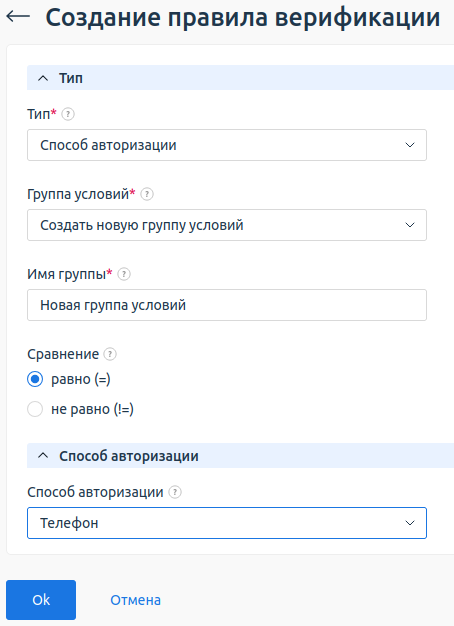 - Верификация пройдена — в группу будут распределены клиенты, которые прошли верификацию каким-либо способом. Подробнее см. статью Верификация клиентов