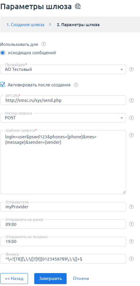 Пример 2. В Clouden для отправки уведомлений настроено два шлюза с id 10 и 15. Для обоих шлюзов выбраны одинаковые типы уведомлений. Уведомления будут отправляться через шлюз с меньшим id — 10. Если сообщения по какой-то причине не были переданы через шлюз с id 10, шлюз с id 15 не отправит эти сообщения.