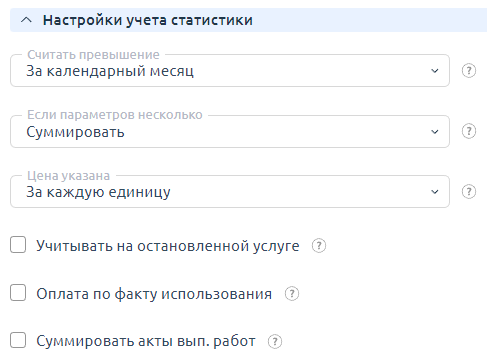 - Суммировать акты выполненных работ — активируйте опцию, чтобы суммировать значения ресурса за весь период, по которому формируется акт выполненных работ.