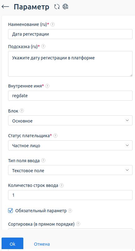Параметр — поле любого типа на форме добавления нового плательщика или компании.
