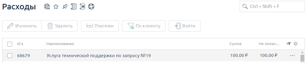 В разделе Финансы → Расходы создаётся расход на списанную сумму: