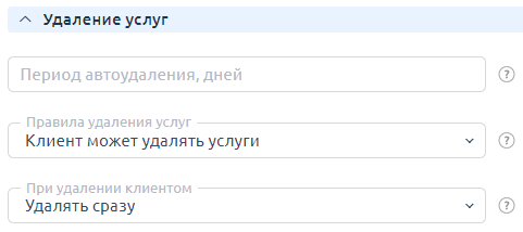 Клиент может удалять услуги самостоятельно, если это допускает политика удаления услуг. Политика удаления услуг настраивается отдельно для каждого типа продуктов.