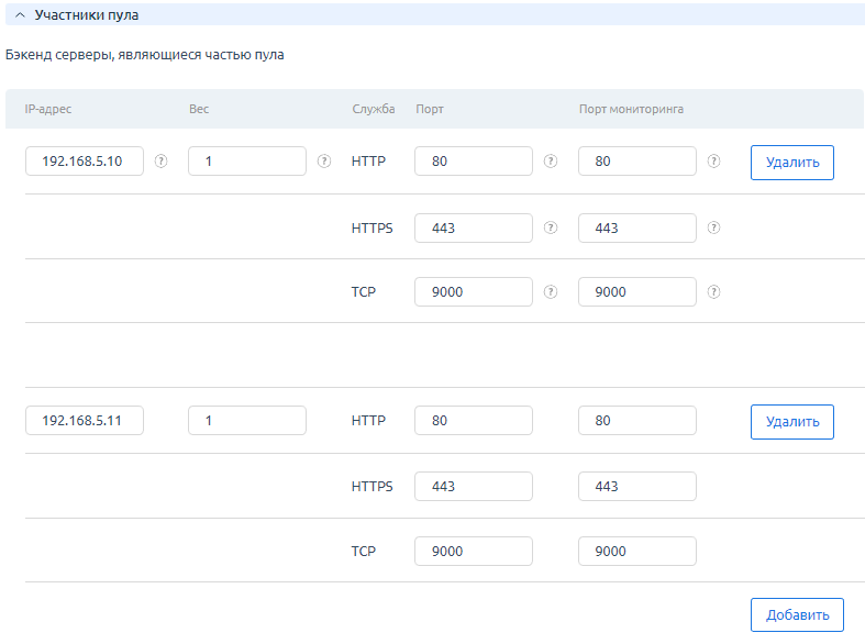 - Вес — вес сервера в балансировке: