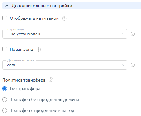 - Запрашивать код трансфера — при трансфере домена в обязательном порядке запрашивается код трансфера.