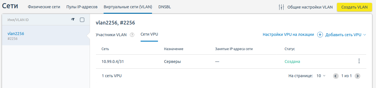 Управлять VPU-сетями вы можете в разделе Сеть → Виртуальные сети (VLAN) → выберите VLAN → Сети VPU.