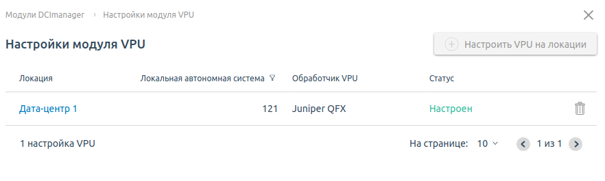 Чтобы настроить модуль для другой локации, нажмите Настроить VPU на локации.