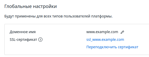 Если платформе не удалось автоматически перевыпустить сертификат Let's Encrypt, то в интерфейсе появятся баннеры с предупреждением. Первый баннер появляется за две недели до окончания срока действия сертификата, второй — после окончания срока действия.