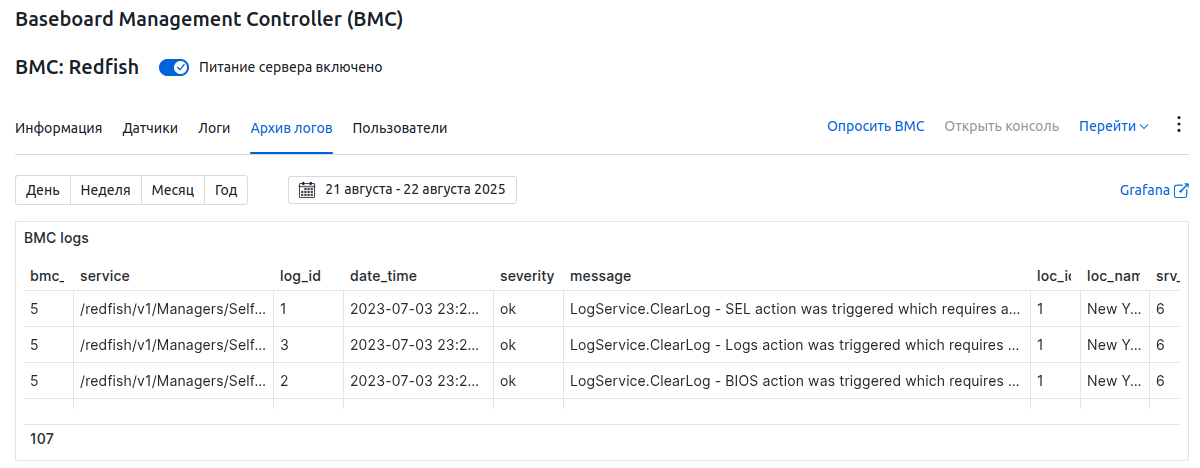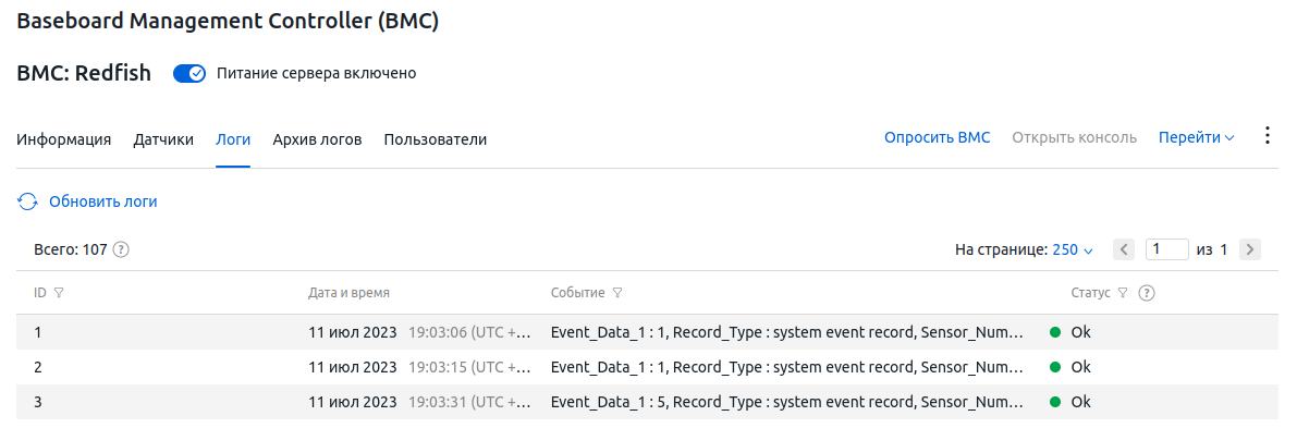 Для просмотра лог-файла BMC перейдите на вкладку Логи.