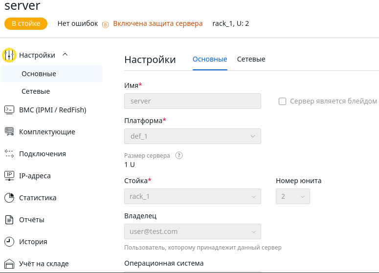 После активации защиты в карточке сервера отобразится надпись Включена защита сервера и платформа применит ограничения к редактированию сервера.