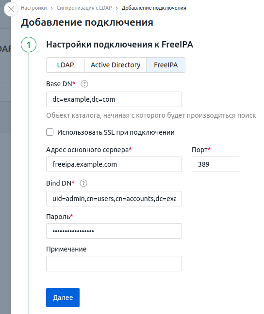 Для синхронизации с ALD Pro выберите FreeIPA.