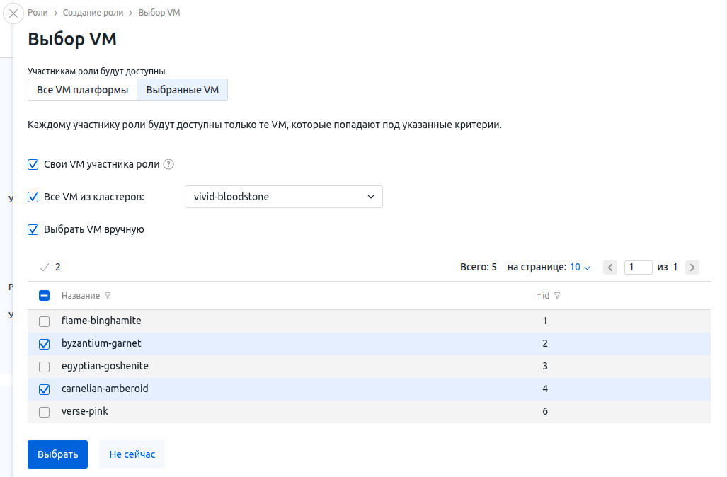 - Выбрать VM вручную → отметьте нужные ВМ в списке.