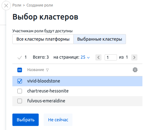 - Выбранные кластеры → отметьте нужные кластеры в списке.