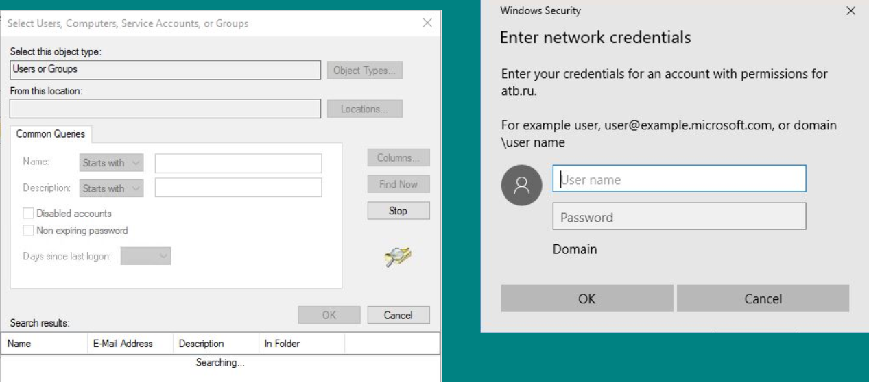 При попытке добавить пользователю ALD Pro разрешения на сетевую папку Microsoft Active Directory запрашивается имя и пароль пользователя: