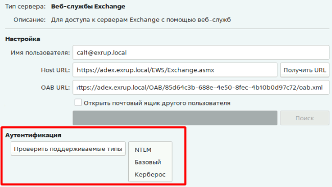 База знаний Почта Evolution Current: Evolution. Ошибка при получении OAB URL PDF Download PDF Download page Evolution. Ошибка при получении OAB URL. Current page Include child pages All pages Evolution. Ошибка при получении OAB URL ПроблемаПри попытке получения OAB URL при подключении почтового ящика EWS возникает ошибка.Диагностика Перейти в меню Получение почты.В разделе Аутентификация проверить поддерживаемый тип:Керберос — появится сообщение вида:NTLM — выполняется постоянный запрос пароля.Проверить, предоставляет ли сервер MS Exchange доступ к OAB (Offline Address Book). Процедуры работы с OAB описаны в статье Использование командной консоли Exchange для просмотра автономных адресных книг. Возможная причина: Сервер MS Exchange не предоставляет OAB. Перейти к решению. Возможные причины Сервер MS Exchange не предоставляет OAB ×