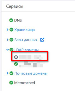 • Перейти в панель управления RuPost и убедиться, что работоспособный LDAP-домен отображается некорректно: