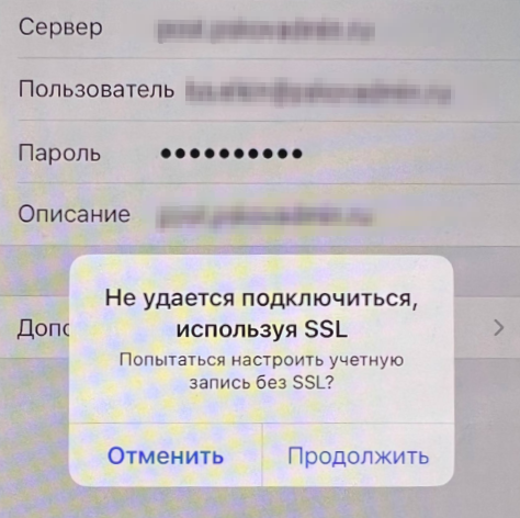 При попытке подключить почту RuPost на встроенном почтовом клиенте смартфона появляется ошибка "Не удается подключиться, используя SSL":