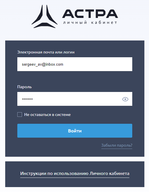 - Перейти по ссылке: lk.astra.ru.