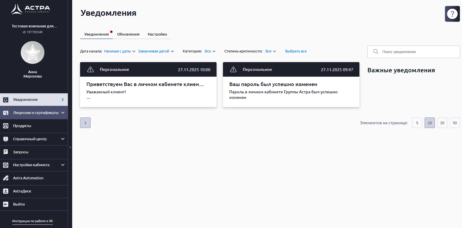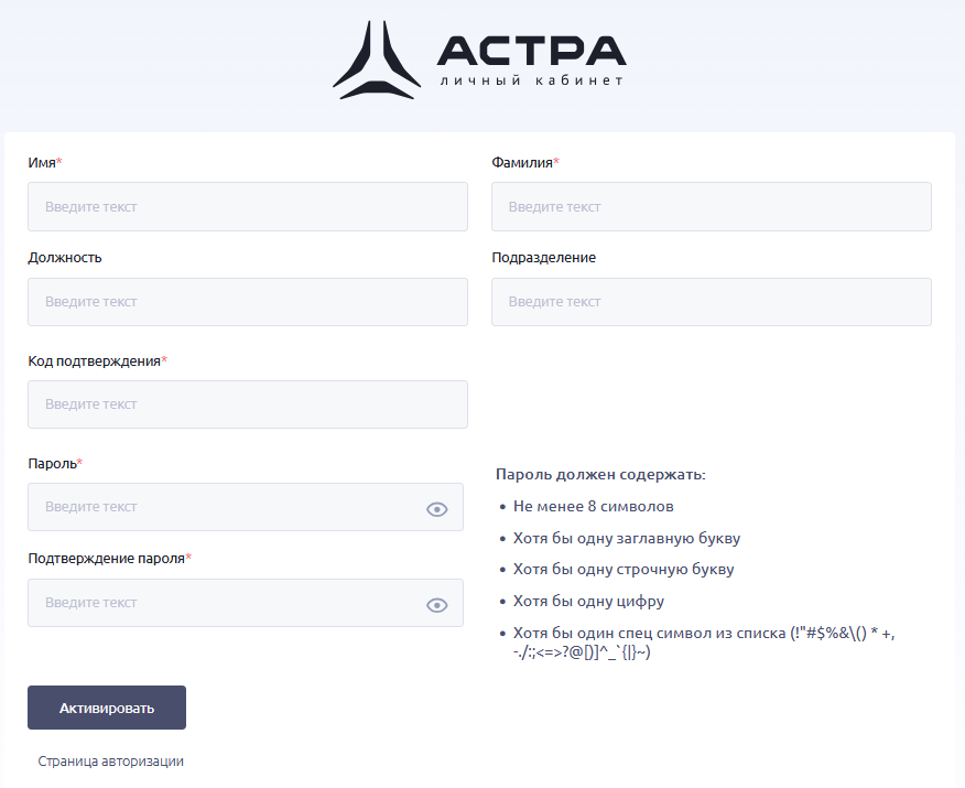 Техническая поддержка Группы Астра оставляет за собой право заблокировать или удалить аккаунты, в которых при заполнении полей Имя и Фамилия использовалась ненормативная лексика или иные некорректные данные.