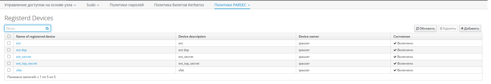 Регистрация съемных устройств в домене FreeIPA осуществляется из web-интерфейса управления контроллера домена путем создания доменных правил для устройств. Для регистрации устройств необходимо: