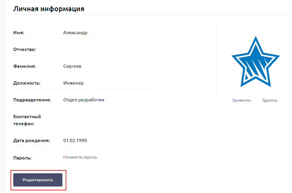 Для редактирования отображаемой информации нажать кнопку Редактировать: