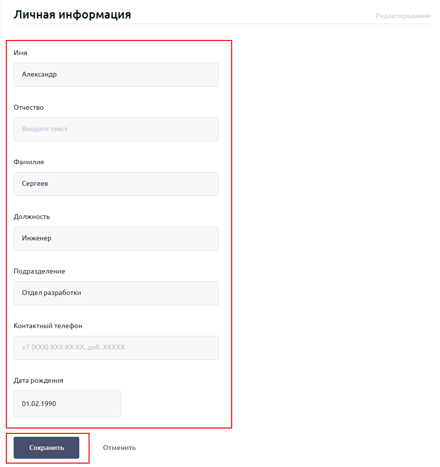Ввести необходимую информацию и нажать кнопку Сохранить: