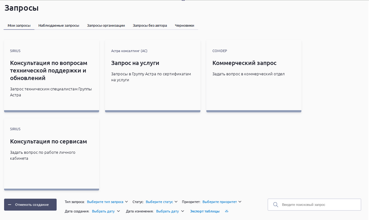 Запрос в Группу Астра по сертификатам на услуги будет: