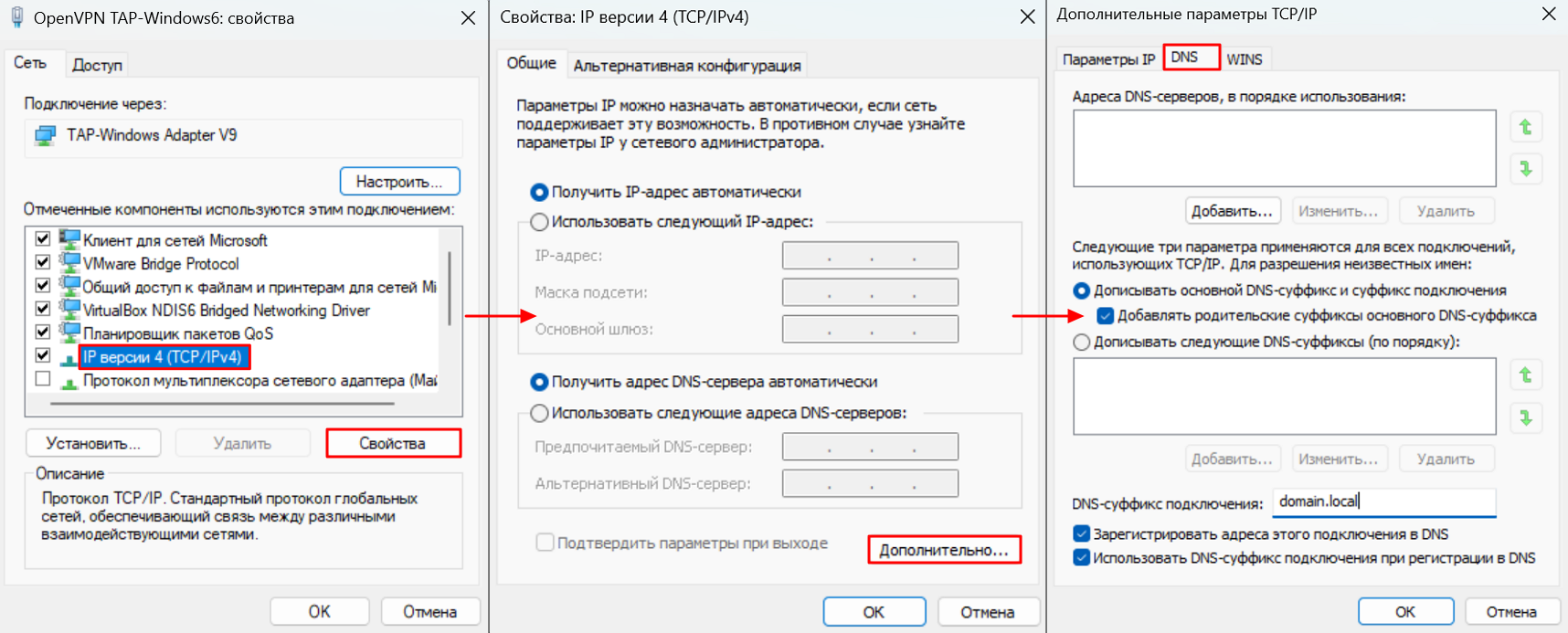 • «DNS-суффикс подключения» - указать домен, которому принадлежит машина;