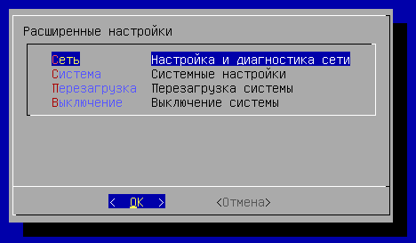 Для изменения настроек сети нужно в главном меню ВМТ нажать клавишу <F2>, ввести текущий пароль администратора (по умолчанию после установки - admin). Будет выполнен переход в меню расширенных настроек.