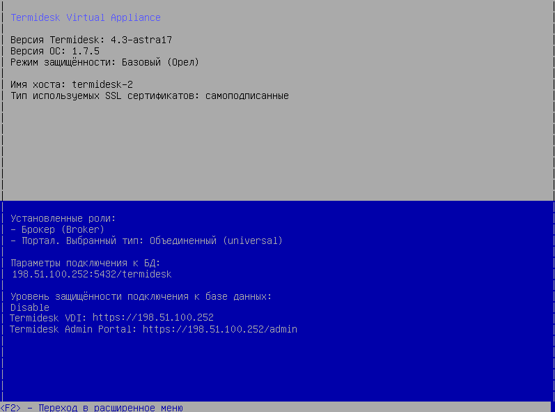 termidesk; - «Пароль»: пароль, заданный при настройке ноды «master»;