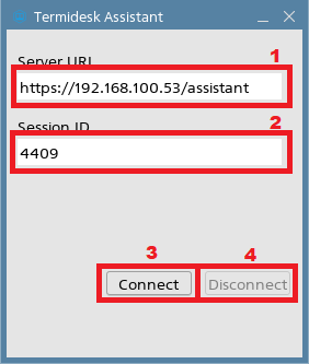 Графический интерфейс клиентской части Удаленного помощника представлен интерфейсом приложения «Termidesk Assistant».