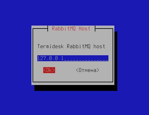 - «Termidesk RabbitMQ host»: адрес узла с установленным RabbitMQ-server (в случае локальной установки —