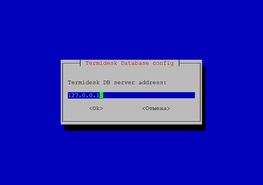 - «Termidesk DB server address»: адрес узла с установленной БД (в случае локальной установки —