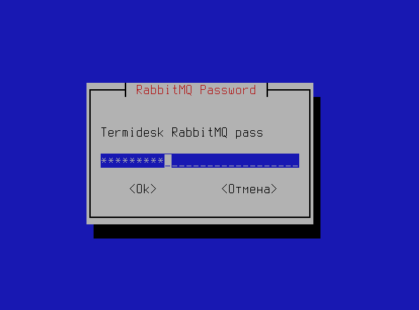 - «Termidesk RabbitMQ pass»: ввести пароль к RabbitMQ