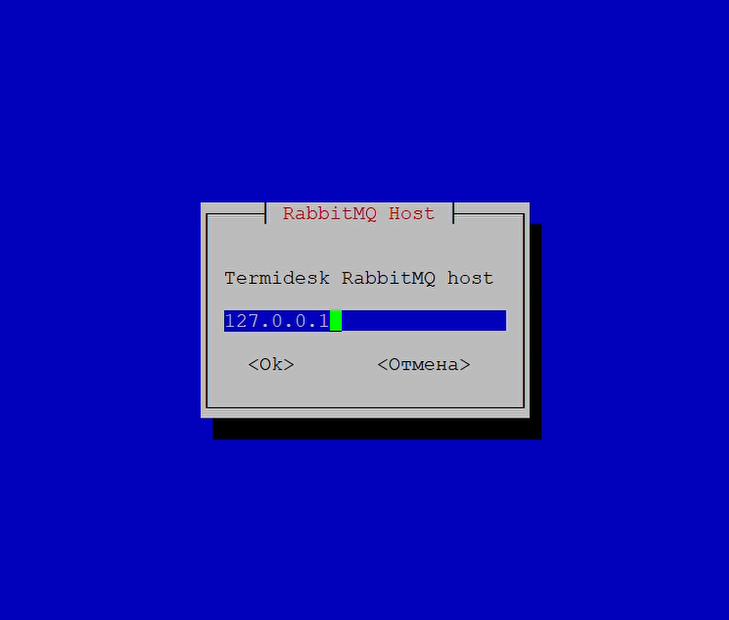 • «Termidesk RabbitMQ host»: адрес узла с установленным RabbitMQ-server (в случае локальной установки — 127.0.0.1);