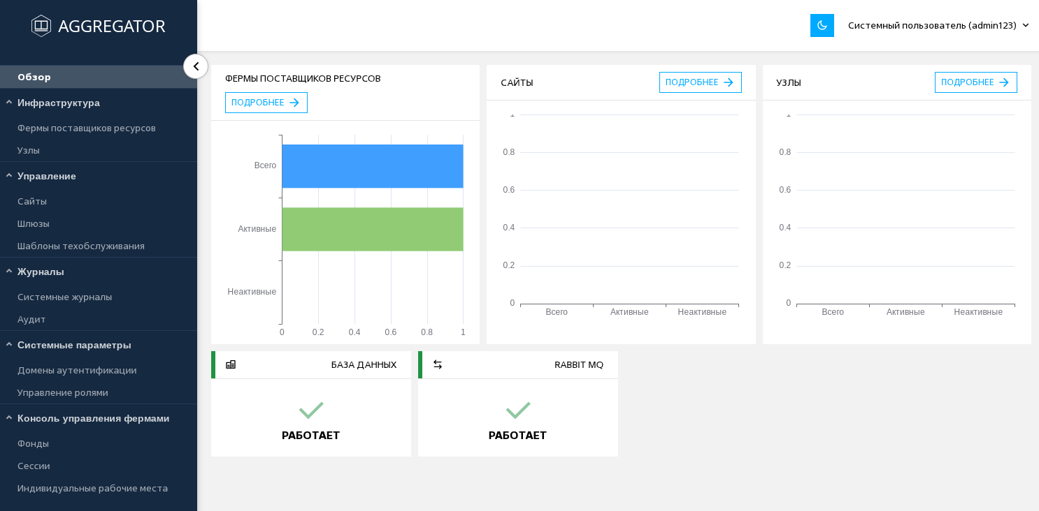 - «Фермы поставщиков ресурсов» - суммарное число и состояние ферм поставщиков ресурсов, добавленных на «Агрегатор»;