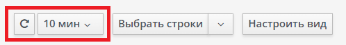 Для обновления значений таблицы используется графический элемент . Для задания периода обновления или его отключения следует использовать выпадающий список со значениями интервала в минутах, расположенный рядом с указанным элементом.