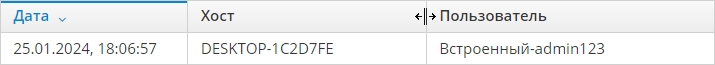 «Пользователь»Имя пользователя, которому было выдано РМ