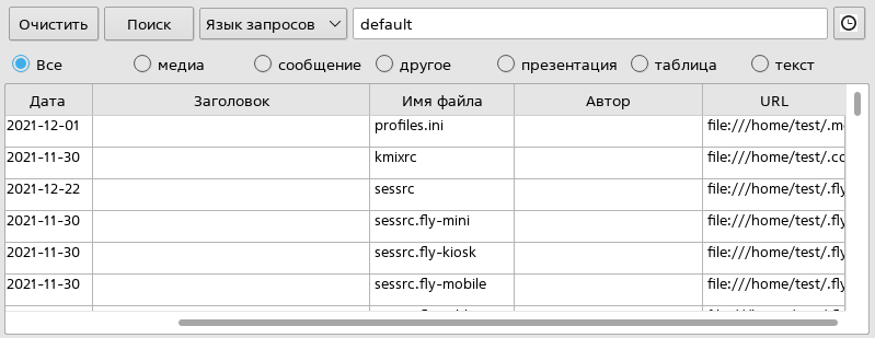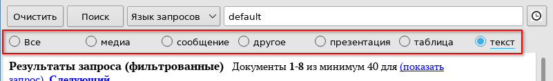 - Язык запросов — поиск совпадений с заданной строкой на языке запросов.